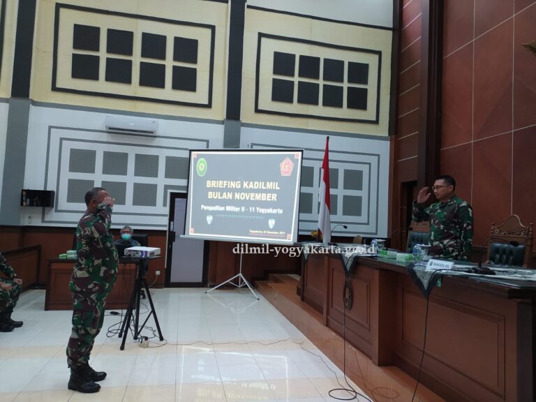 Yogyakarta, hari Rabu tanggal 03 November 2021 Kadilmil II-11 Yogyakarta Letnan Kolonel Chk Fredy Ferdian Isnartanto, S.H., M.H. melaksanakan kegiatan Briefing rutin di ruang sidang Merbabu dengan dihadiri seluruh anggota Dilmil II-11 Yogyakarta.