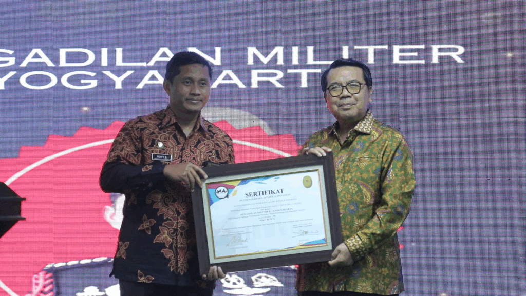 Pengadilan Militer II-11 Yogyakarta berhasil mendapatkan penghargaan berupa sertifikat Sistem Manajemen Anti Penyuapan (SMAP) dari Badan Pengawasan Mahkamah Agung RI. Kegiatan Penyampaian Hasil Evaluasi dan Penyerahan Sertifikat Sistem Manajemen Anti Penyuapan (SMAP) yang dilaksanakan pada hari Rabu tanggal 13 Desember 2023 diberikan langsung oleh Yang Mulia Ketua Mahkamah Agung RI Prof. DR. H. Muhammad Syarifudin, […]