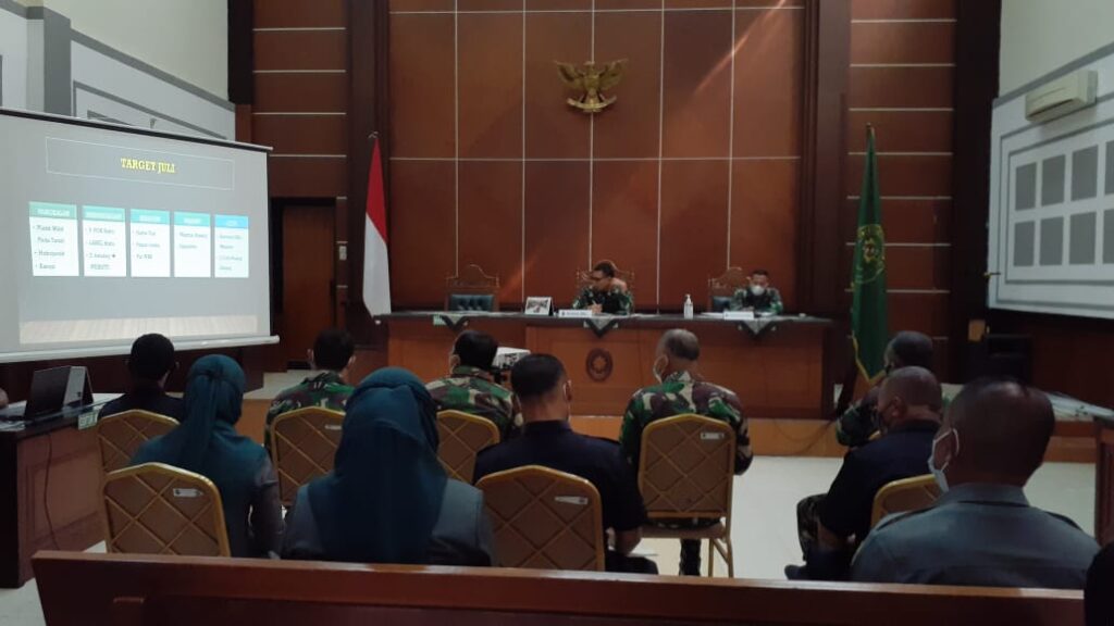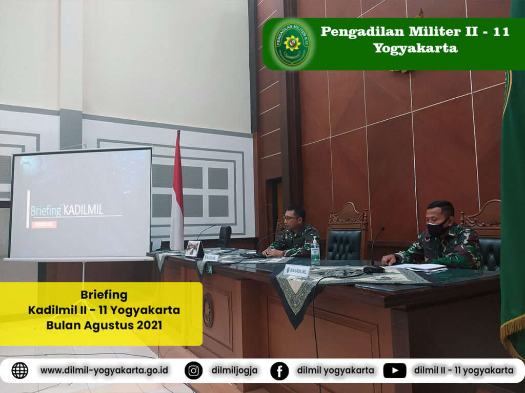Yogyakarta, hari Kamis tanggal 02 September 2021 Kadilmil II-11 Yogyakarta Letnan Kolonel Chk Fredy Ferdian Isnartanto, S.H., M.H. melaksanakan kegiatan Briefing rutin di ruang sidang Merbabu dengan dihadiri seluruh anggota Dilmil II-11 Yogyakarta. Kegiatan diawali dengan menyanyikan lagu mars Peradilan Militer yang diikuti seluruh anggota guna menambah semangat dalam bekerja. Kadilmil II-11 Yogyakarta menyampaikan evaluasi […]