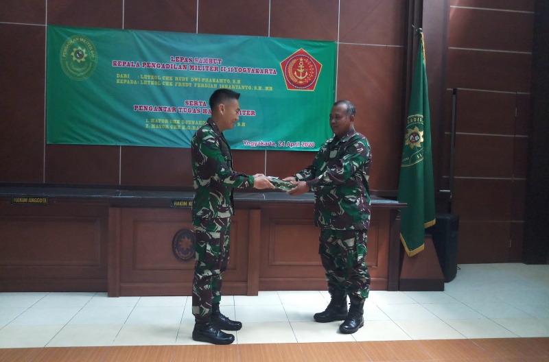 Acara lepas sambut Kadilmil II-11 Yogyakarta dari Letkol Chk Dwi Prakamto, S.H kepada Letkol Chk Fredy Ferdian Isnartanto, S.H.,M.H serta pengantar tugas Hakim Militer Mayor Chk Djunaedi Iskandar, S.H dan Mayor Chk K.G Reagen, S.H dilaksanakan hari ini Jumat, 27 April 2020 di Ruang Sidang Utama Dilmil II-11 Yogyakarta. Dalam acara tersebut hanya di hadiri oleh staf Dilmil II-11 Yogyakarta dan sangat sederhana dan menjaga jarak serta protokol dalam hal mencegah penyebaran virus Corona Covid-19.
