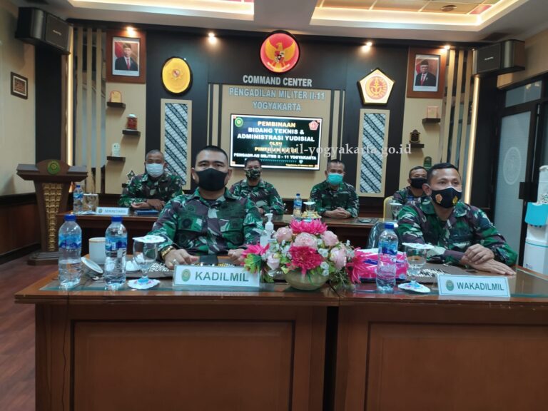 Berdasarkan undangan dari Wakil Ketua Mahkamah Agung Bidang Non bidang Teknis Yudisial Nomor 65/WKMA.NY/UND/10/2021 tanggal 13 Oktober 2021, Kepala Pengadilan Militer II-11 Yogyakarta Letnan Kolonel Chk Fredy Ferdian Isnartanto, S.H., M.H. dan Wakil Kepala Pengadilan Militer II-11 Yogyakarta Mayor Chk Moch. Arif Sumarsono, S.H., M.H. beserta para Hakim, Panitera serta Sekretaris mengikuti kegiatan Pembinaan Bidang Teknis dan Administrasi Yudisial secara virtual di Ruang Command Center Dilmil II-11 Yogyakarta.