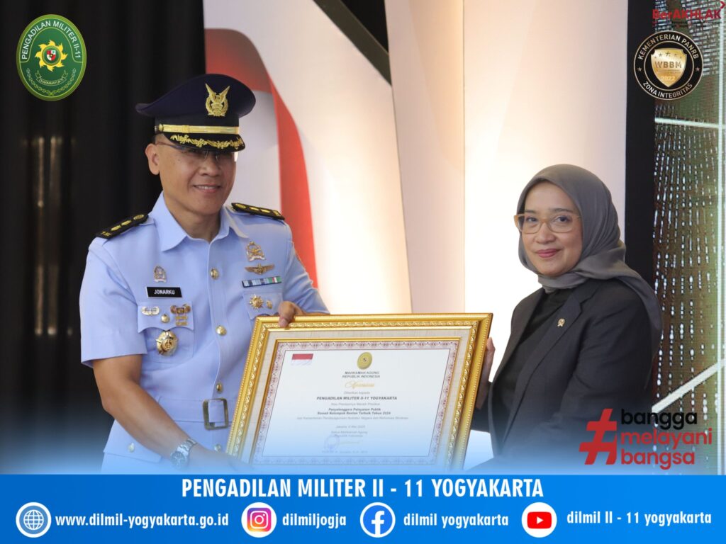 Pengadilan Militer II-11 Yogyakarta meraih penghargaan sebagai Pengadilan yang ramah terhadap kelompok rentan.
