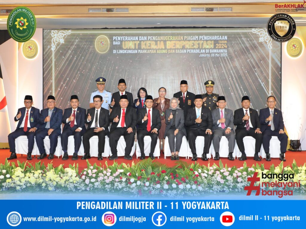 Kepala Pengadilan Militer II-11 Yogyakarta Letnan Kolonel Kum Jonarku, S.H., M.H. menghadiri acara penganugerahan dan penyerahan Piagam Penghargaan unit kerja berprestasi di lingkungan Mahkamah Agung RI dan Badan Peradilan di bawahnya.