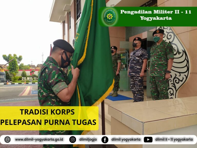 Yogyakarta, 4 Maret 2022 dilaksanakan kegiatan Tradisi Korps Pelepasan Purna Tugas Mayor Chk Patta Imang, S.H., sebagi tradisi dalam pelepasan personel di Pengadilan Militer II-11 Yogyakarta.