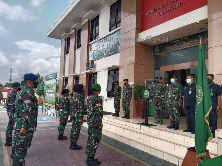 Kepala Pengadilan Militer II-11 Yogyakarta Letnan Kolonel Chk Fredy Ferdian Isnartanto, S.H., M.H. beserta seluruh anggota melaksanakan tradisi korps penyambutan calon Hakim Militer yang akan melaksanakan magang di Pengadilan Militer II-11 Yogyakarta.